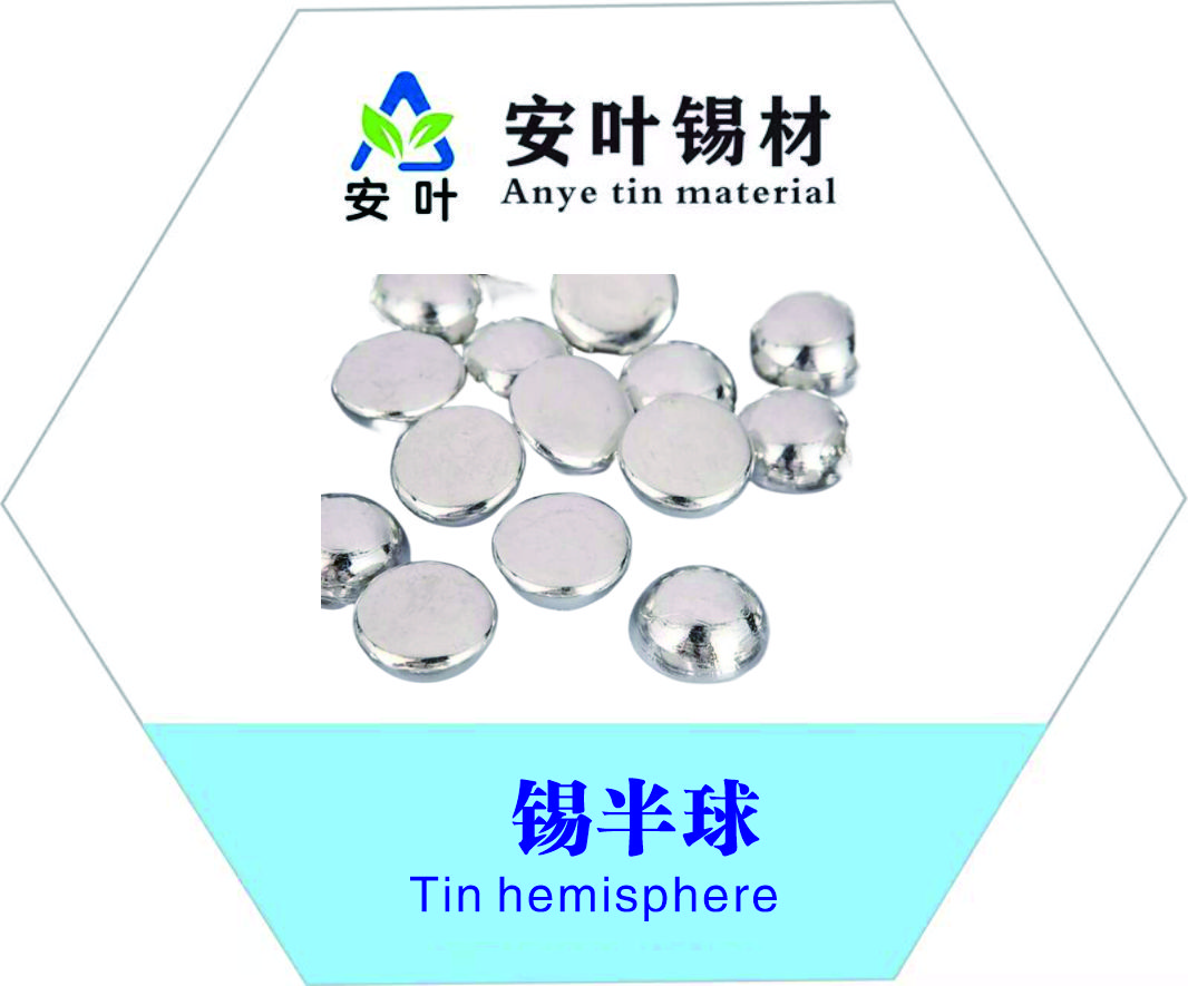采用国际上最先进的全自动设备浇铸成型,锡粒表面光亮致密,大小一致,更多的接触面积,更高的电流效率,更一致的电流分布,更低的锡沉淀。常见的阳极球形状为球形、半球形,球形直径为10~25mm,可根据客户要求生产不同大小与特殊形状的锡粒。半球形与球形相似,为球形的一半,有更大的接触表面。